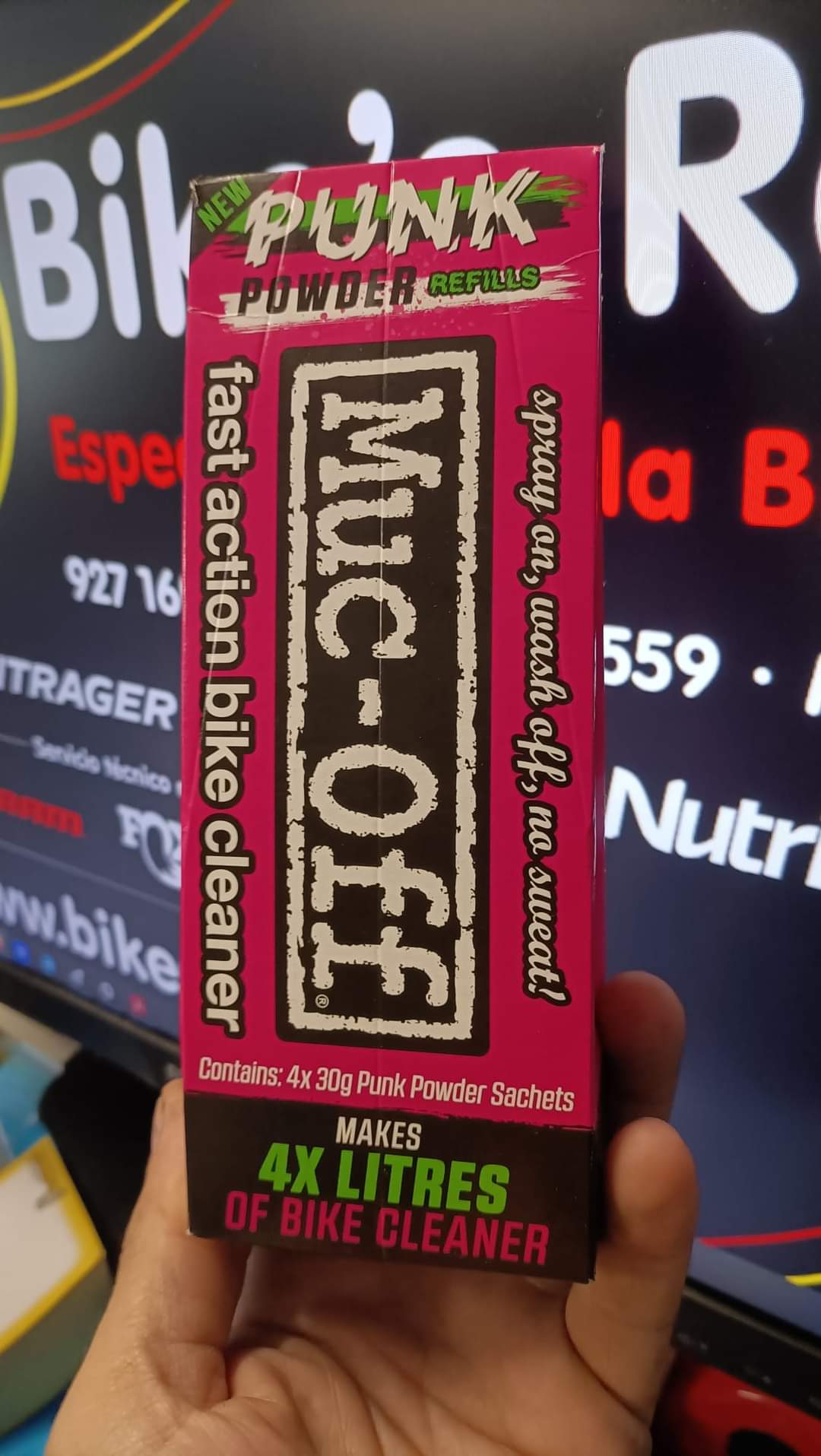 - Caja de cartón reciclado FSC que contiene 4 bolsitas que hace 4L de limpiador de bicicletas.